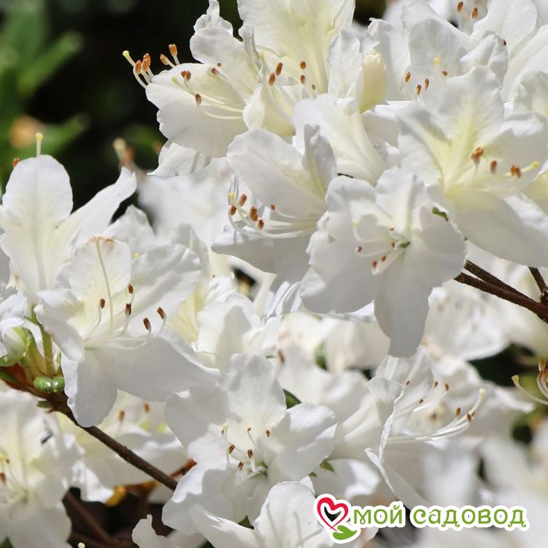 Азалия японская Ольга Ниблетт — редкий сорт азалии. Куст компактный, красивый, пышноцветущий. Белые цветы с желто-зеленой серединкой густо покрывают все растение. Рекомендуется для домашних садов и альпинариев. На зиму требует укрытия.